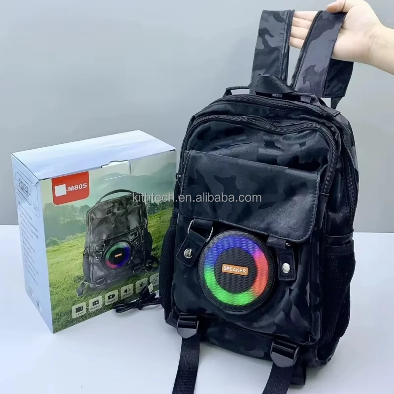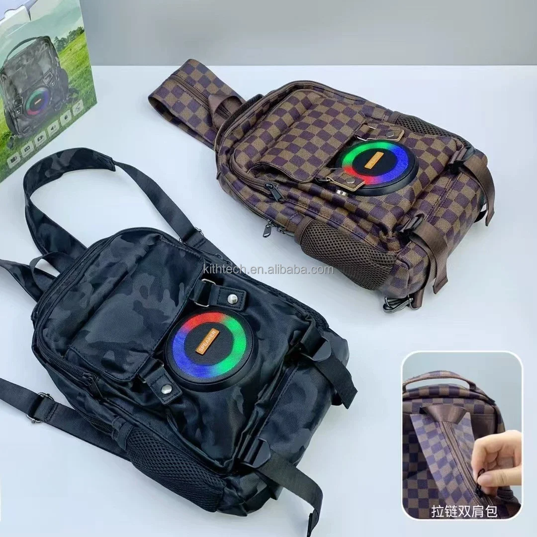 Buy an outdoor backpack Bluetooth speaker, a large capacity rechargeable and waterproof travel bag with a power bank for hiking and cycling use.